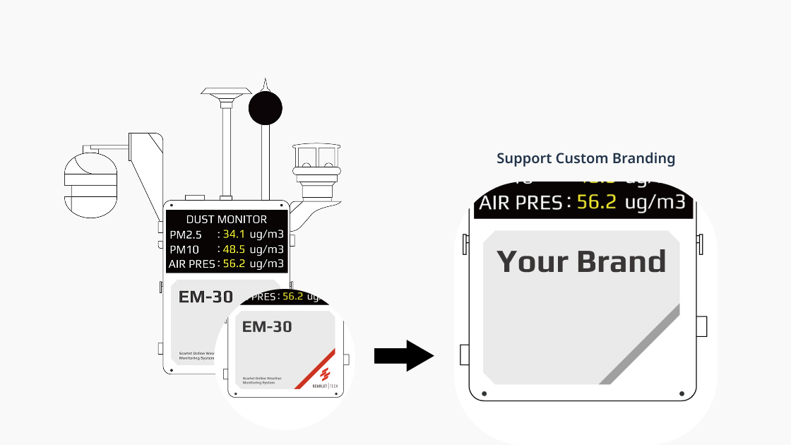 We can customize hardware (sensors, enclosures, power supply), connectivity (Wi-Fi, 4G, 5G, LAN, etc.), data transmission methods, and software interfaces (apps, dashboards, reporting formats).