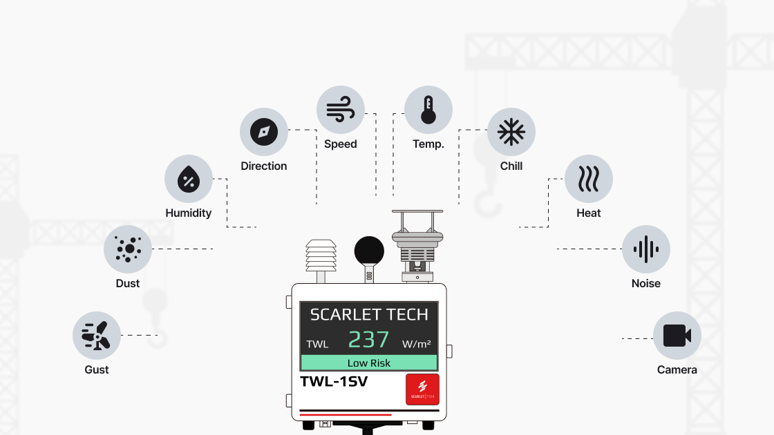 Scarlet offers customized solutions to fulfill your project needs, covering wind, noise, heat, air quality, and crane camera systems. We also develop our own software and cloud-based platform, which can be tailored upon request to meet specific requirements, enabling seamless remote monitoring, data visualization, and system management through an intuitive web portal.