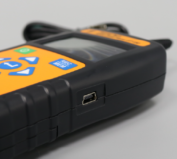 USB mini-B type port for connecting the device to PC software, enabling device control and data logging.