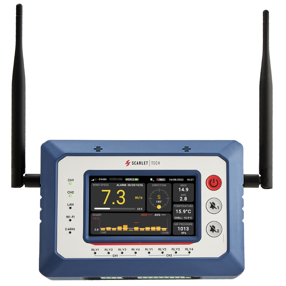 Stay aware with live wind alerts. Each sensor channel supports four user-set thresholds, triggering visual LED warnings and audible alarms when wind speeds are exceeded.