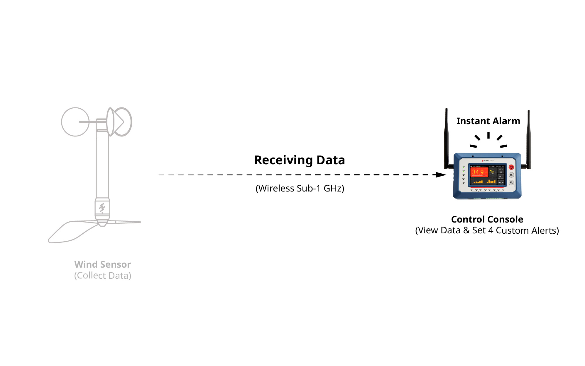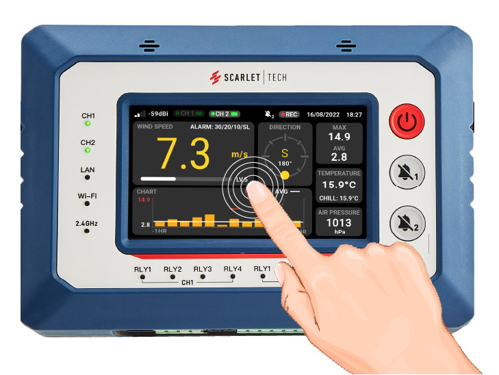 Stay aware with live wind alerts. Each sensor channel supports four user-set thresholds, triggering visual LED warnings and audible alarms when wind speeds are exceeded.