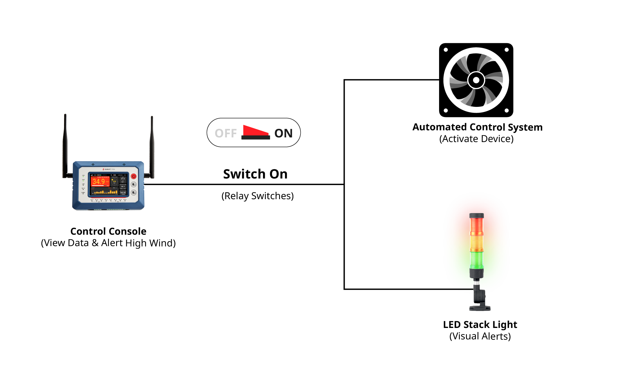 Automate safety with programmable wind-speed limits. Contact relays can activate or shut down external devices and systems the moment thresholds are reached.