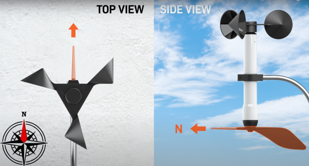 Step 5: Orient the sensor’s wind vane pointer to the True North.